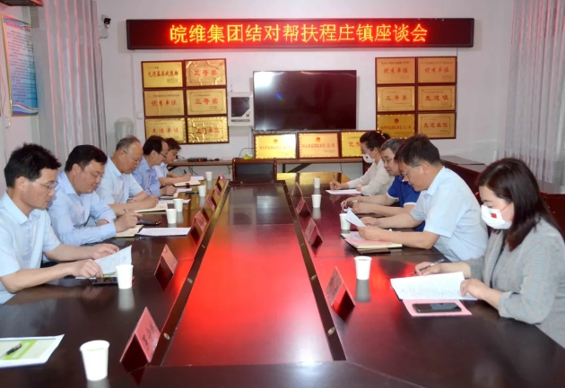 在随后举行的座谈会上,砀山县县委书记唐明、砀山县纪委书记李虎、程庄镇党委书记陈凯分别介绍了砀山县、程庄镇基本情况,以及近年来在产业发展、基础建设、村容村貌、社会治理和党的建设等方面情况,对皖维集团倾情助力程庄镇乡村振兴表示感谢。